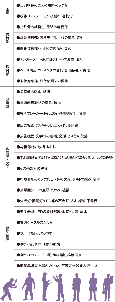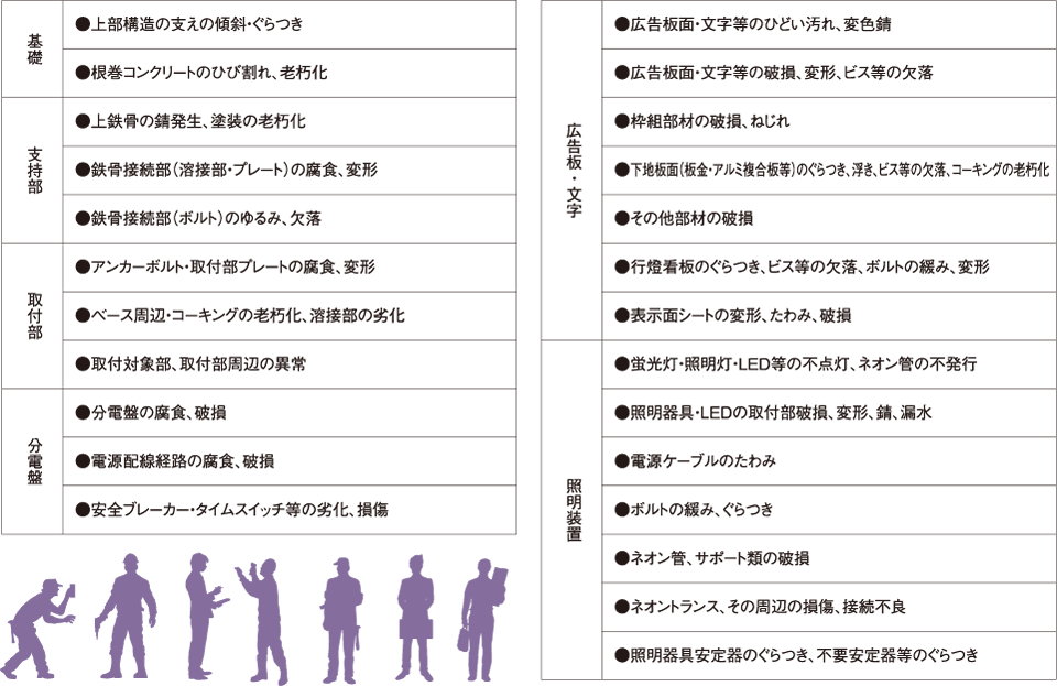 また、多額の賠償金や風評被害などにより、事業の継続が困難に陥ることも考えられることから、そのような経年劣化による事故を未然に防ぐためにも、屋外広告物(看板・サイン)の定期的な安全点検・メンテナンスを行うことを、オススメいたします。